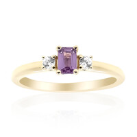 Descubra la elegancia con este exquisito anillo de zafiro púrpura de Ceilán. El zafiro de Sri Lanka de talla octogonal cautiva la atención, flanqueado por dos brillantes circonitas camboyanas. Elaborado en lustroso oro amarillo de 9 quilates, este anillo es perfecto tanto para la elegancia cotidiana como para las ocasiones especiales. Ideal para combinar con ropa de noche o con un look chic de día, realza cualquier atuendo con un toque de lujo.