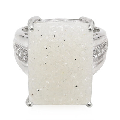 Experimente el encanto de este cautivador anillo de plata de ley 925, con un opulento Glitzer-Achat brasileño de 16,95 quilates. El ágata talla cabujón antigua, que mide unos impresionantes 19x14,5 mm, resplandece con un brillo cristalino, perfectamente enmarcado por ocho brillantes topacios blancos redondos. Esta encantadora pieza logra un armonioso equilibrio entre el encanto clásico y la elegancia moderna, lo que la convierte en un accesorio ideal para una sofisticada salida nocturna o como pieza destacada para lucir a diario.