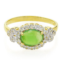 Descubra la elegancia con este impresionante anillo de crisoprasa con un cabujón oval de 0,5 quilates procedente de Australia. Acentuado con topacio brasileño talla brillante, irradia sofisticación. El engaste de plata de ley chapada en oro realza su lujoso atractivo. Perfecto para ocasiones formales o para añadir un toque chic a conjuntos informales. Una obra maestra para cualquier colección de joyas.