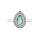 Este elegante anillo exhibe una cautivadora gota de esmeralda rusa, que acentúa su peso de 0,686 ct y su distintiva talla. Engarzado en plata de ley 925 bañada en platino para mayor brillo y durabilidad, está adornado con 26 gemas de circón camboyano que suman 0,173 ct y enmarcan la piedra central con brillo. Su refinado diseño y color lo convierten en un accesorio versátil, perfecto tanto para las transiciones del día a la noche como para las ocasiones especiales. Combínalo con tonos pastel o tierra para complementar su exuberante brillo verde.