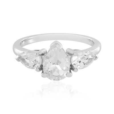Descubra el delicado encanto de nuestro Anillo de Plata con Topacio Blanco Brasileño. Esta pieza presenta un lustroso trío de piedras de topacio, con la pieza central de 1,107 quilates y flanqueada por dos gemas a juego que suman 0,81 quilates. Este anillo, tallado en una elegante forma de lágrima y engastado en plata de ley 925 de alta calidad, mide 22x19 mm, lo que le confiere un aspecto impresionante. Su banda de plata de 2,25 g ofrece un ajuste cómodo, por lo que es perfecto para llevar a diario o en ocasiones especiales. Con su diseño atemporal y brillo helado, este anillo es una adición versátil a cualquier colección de joyas, complementando tanto atuendo casual y formal.