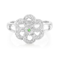 Descubra el sutil juego de colores y destellos de este elegante anillo de plata de ley 925, con una vibrante tsavorita keniana de 0,01 ct, meticulosamente tallada en forma de brillante redondo para lograr el máximo brillo. Alrededor de la lustrosa gema verde hay 36 relucientes topacios blancos de Brasil, cada uno de ellos también tallado en forma de brillante redondo, que añaden un brillante contraste. El elegante diseño en forma de flor de este anillo es perfecto para llevarlo a diario o en eventos especiales, y promete añadir un toque de sofisticación a su conjunto. Su peso de 2,9 g de plata y sus llamativas dimensiones de 23x20,5 mm lo convierten en una opción llamativa pero cómoda para cualquier colección de joyas.