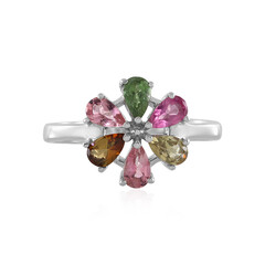 Este exquisito anillo presenta siete turmalinas talla marquesa de Mozambique, bellamente engastadas en plata de ley 925 con acabado de platino. El colorido conjunto de piedras crea un llamativo diseño floral que añade un toque de elegancia a cualquier atuendo. Perfecto tanto para eventos formales como para reuniones informales, el vibrante diseño de este anillo captará sin duda la atención y la admiración.