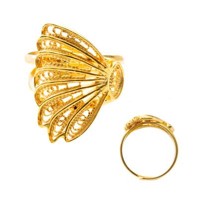 Descubra la elegancia con este anillo de exquisito diseño, elaborado en plata de ley 925 y adornado con un lujoso baño de oro. Con un peso aproximado de 3,3 gramos, su intrincado patrón de filigrana evoca una sensación de belleza atemporal. Perfecto para añadir un toque de sofisticación tanto a atuendos informales como formales, este anillo es una pieza destacada para cualquier ocasión.