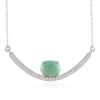 Explore el encanto de la turquesa con este impresionante collar que incluye un cabujón ovalado de turquesa Tyrone de 1,875 quilates procedente de Estados Unidos. Complementado con 27 circonitas redondas de Tanzania, esta pieza brilla con elegancia. Elaborada en plata de ley 925 bañada en platino, es perfecta para añadir un toque de color a tus conjuntos. Ideal tanto para ocasiones informales como formales, realza cualquier conjunto sin esfuerzo.