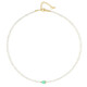 Descubra la elegancia con este collar de zafiro blanco, acentuado por una vibrante cuenta de esmeralda de Brasil. Elaborado en plata de ley 925 chapada en oro, sus cuentas facetadas destilan sofisticación. Perfecto para reuniones nocturnas o para añadir un toque de lujo a su look diario, este collar complementa sin esfuerzo tanto atuendos informales como formales.