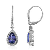 Celebre la elegancia atemporal con estos exquisitos pendientes, que exhiben artísticamente piedras de tanzanita AAA en forma de pera procedentes de Tanzania, con un total de 2,49 ct. Cada pendiente está coronado por un halo de diamantes de claridad I1, color H que suman 0,708 ct, creando un brillo fascinante contra el engaste de oro blanco de 14 quilates, con un peso aproximado de 3,58 g. Con 30 mm de longitud, son perfectos tanto para el día a día como para eventos especiales. Cultive un look sofisticado combinando estas lujosas gotas con un vestido de noche clásico o un elegante atuendo de negocios.